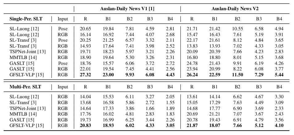 Benchmark of Auslan-Daily News V2 on Sign Language Translation